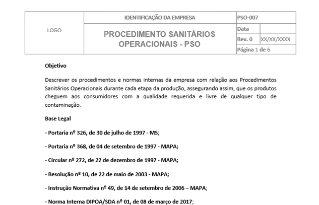 Descrever os procedimentos e normas internas da empresa com relação aos Procedimentos Sanitários Operacionais durante cada etapa da produção, assegurando assim, que os produtos cheguem aos consumidores com a qualidade requerida e livre de qualquer tipo de contaminação.